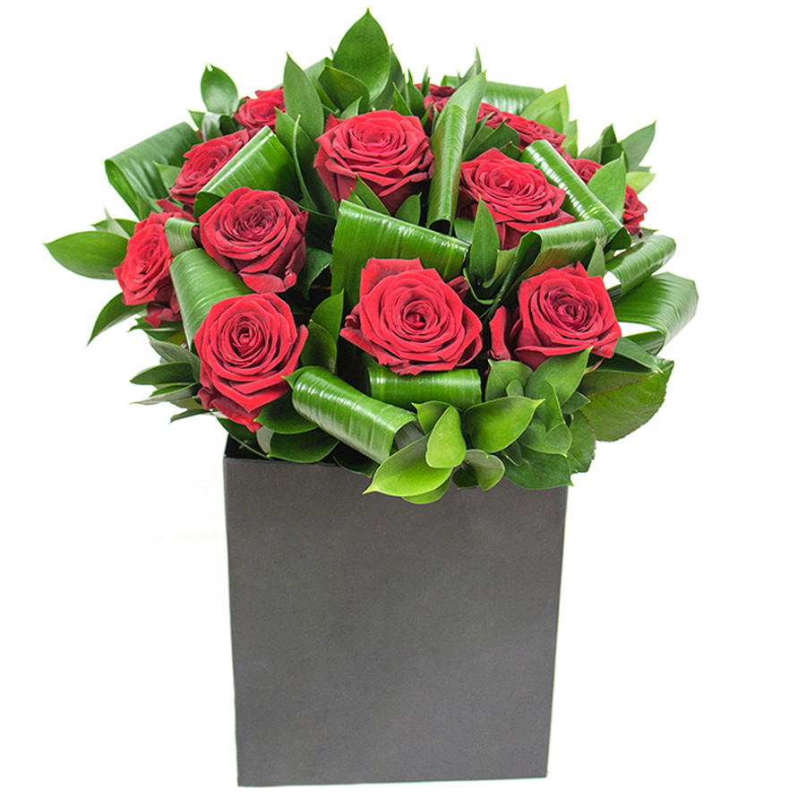 Indulge in the sophistication of our hand-crafted bouquet, where passionate red roses meet the understated charm of aspidistra leaves and ruscus. Every bloom is meticulously hand-selected to ensure unparalleled freshness, transforming your space with its vibrant and unique design. The rich, deep hues of the roses are perfectly complemented by lush greenery, creating a centerpiece that exudes luxury and natural grace.